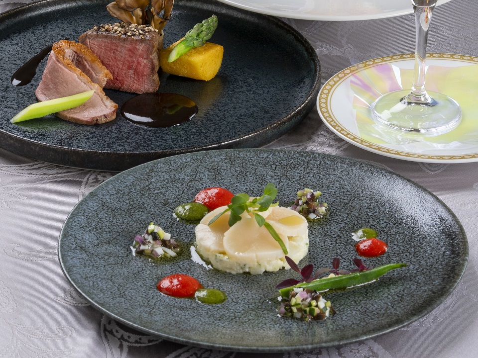 - 北海道産牛フィレ肉のポワレ デュカスパイスの香り 余市赤ワインベースのオニオンソース