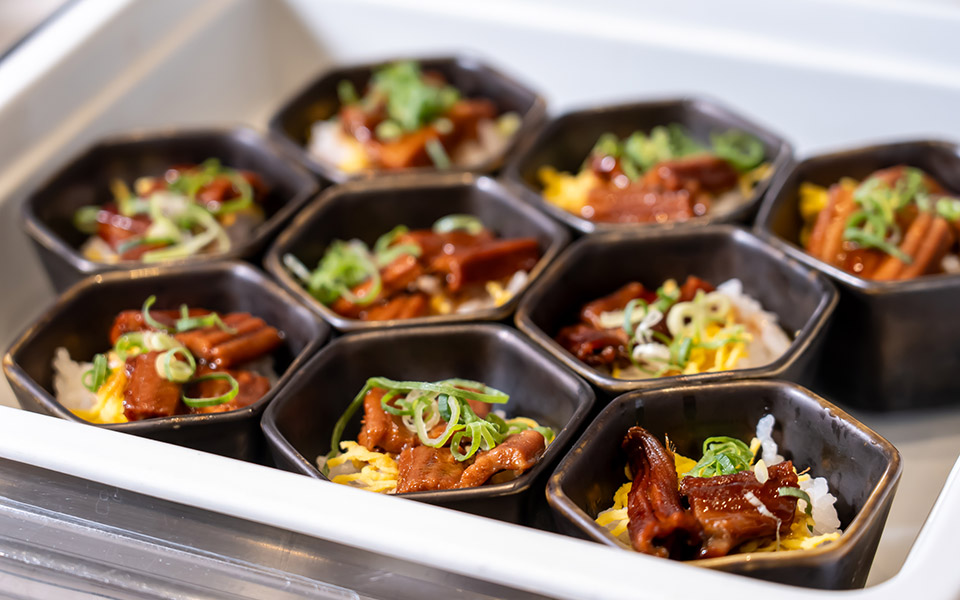 ご当地名物、しょうが醤油でいただく「姫路おでん」をはじめ、ふんわりとした穴子丼やヒネポンなど、播磨・姫路エリアの地産地消メニューをお楽しみいただけます。