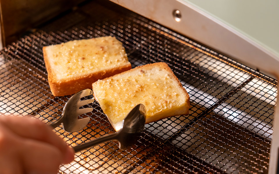 地元の喫茶店では定番の「アーモンドトースト」を手軽に召し上がっていただけます。アーモンドバターがたっぷり塗られたパンを、オーブントースターでお好みの焼き加減で。