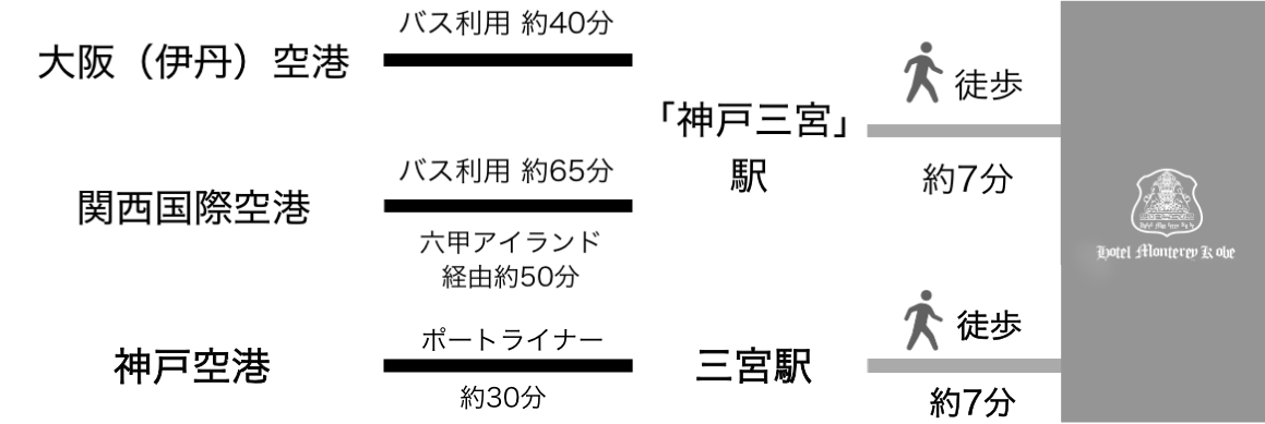 神戸観光はもちろんのこと地下鉄「三宮」と「新神戸」は一駅という便利さでビジネスにも最適。