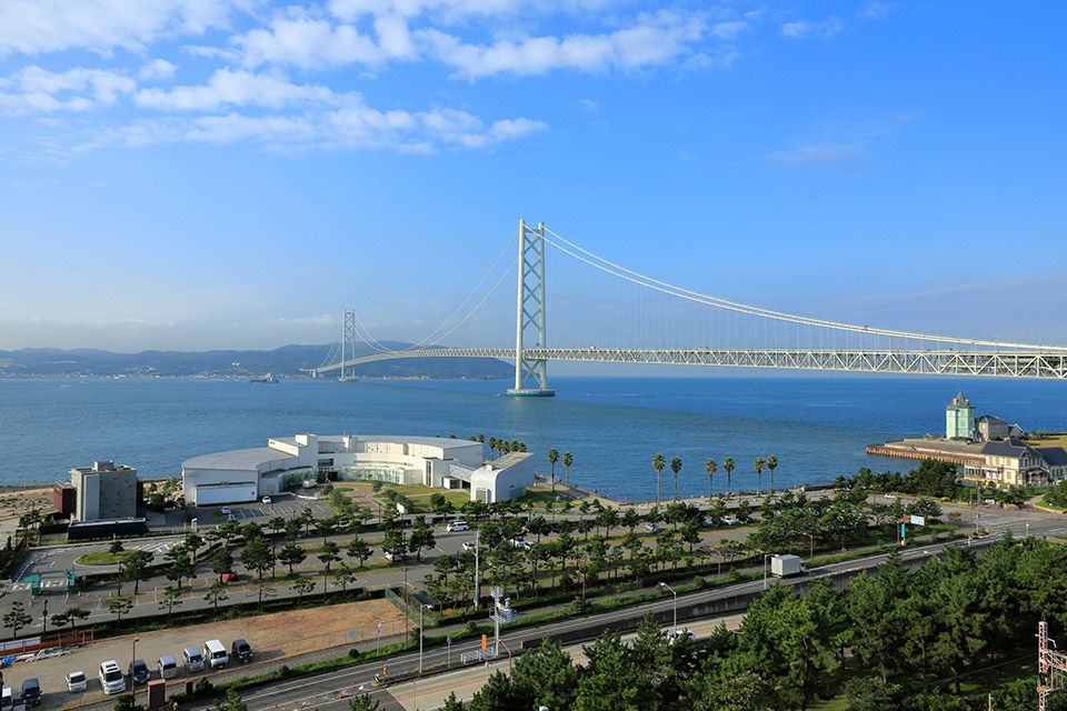 世界最長の吊り橋「明石海峡大橋」は三宮から遠いようで、JR神戸線快速で21分で行ける観光スポットです。明石海峡大橋の魅力は、壮大なスケール感と橋の美しさと、絵になるような周辺の景観。夜は季節ごとに色が変わるライトアップも。時間帯だけではなく季節ごとにも違う眺めを楽しませてくれます。舞子公園から眺めるのもおすすめ。
