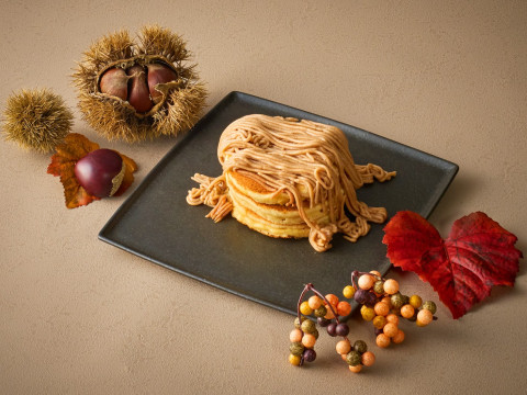 スィートポテトや柿のコンポートなどのスイーツ、チキンとキノコのテリーヌなどのセイボリーに加え、見た目にもインパクト大なモンブラン風のパンケーキなど盛りだくさんの内容でお愉しみ頂けます。