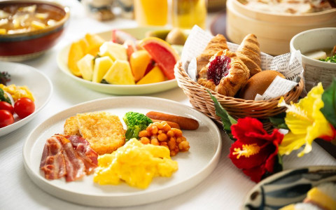 ホテル2階「ロイヤルホスト」にて、和洋中心、沖縄料理を含むバラエティに富んだビュッフェスタイルのお食事をご用意しています。