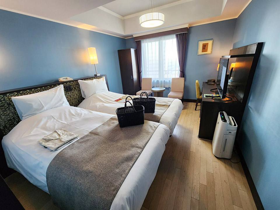 客室内標準設備 客室内標準設備 ウルトラファインミスト「ミラブル」シャワーヘッド、スマートTV、イオンドライヤー、パジャマ(セパレートタイプ)、スリッパ、テレビ、室内電話、高速LAN接続(無料)、ライティングデスク、レターセット(便箋、封筒)、ランドリーバック、ポット、冷蔵庫、クローゼット(ハンガー、靴磨き、靴べら)、洗浄器付トイレ、空調(冷暖房完備)、加湿機能付空気清浄機(プラズマクラスター)
