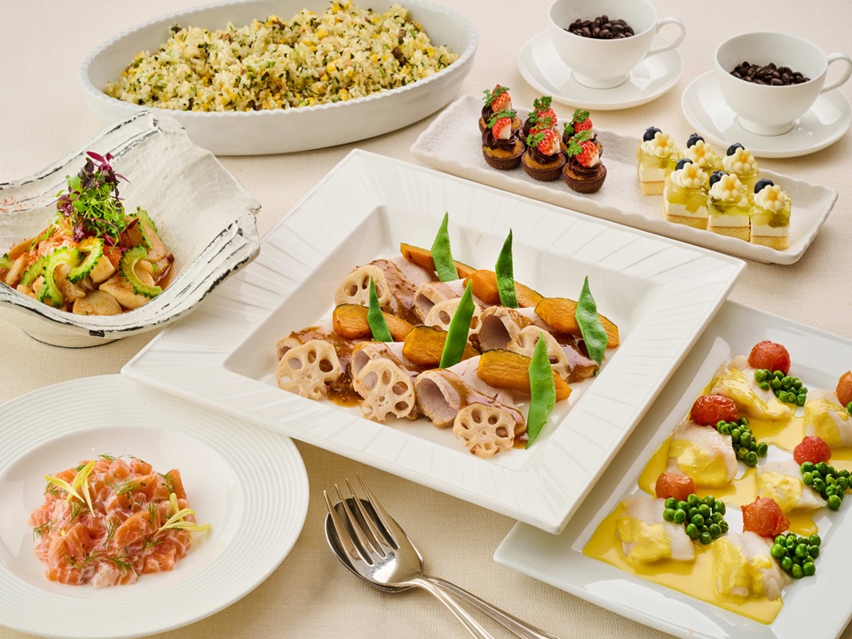 ホテルモントレ沖縄 スパ&リゾートでの朝食は、ビュッフェスタイル、和定食をご用意しております。海を眺めながらのビュッフェ朝食や、沖縄食材を盛り込んだ和定食など南国リゾートでの朝をお楽しみいただけます。