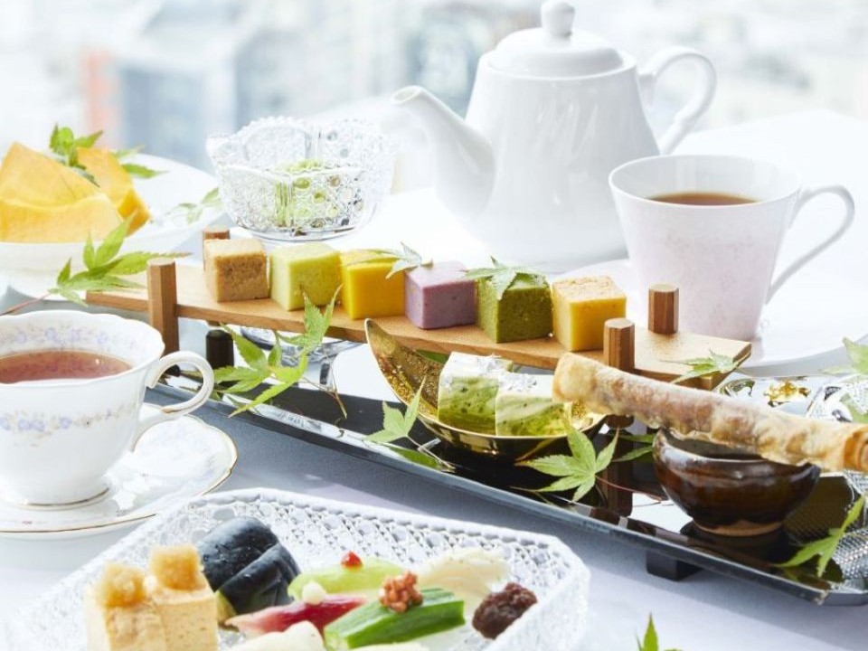 季節のフルーツ大福やわらび餅、彩りカステラなど和の職人が仕立てた一口サイズの『和菓子と水菓子』を贅沢にあしらった和のアフタヌーンティーセットの登場です! 高層階(22階)のパノラマとともに、日本の四季を感じる色鮮やかな和のスイーツを少しずつお楽しみいただけます。