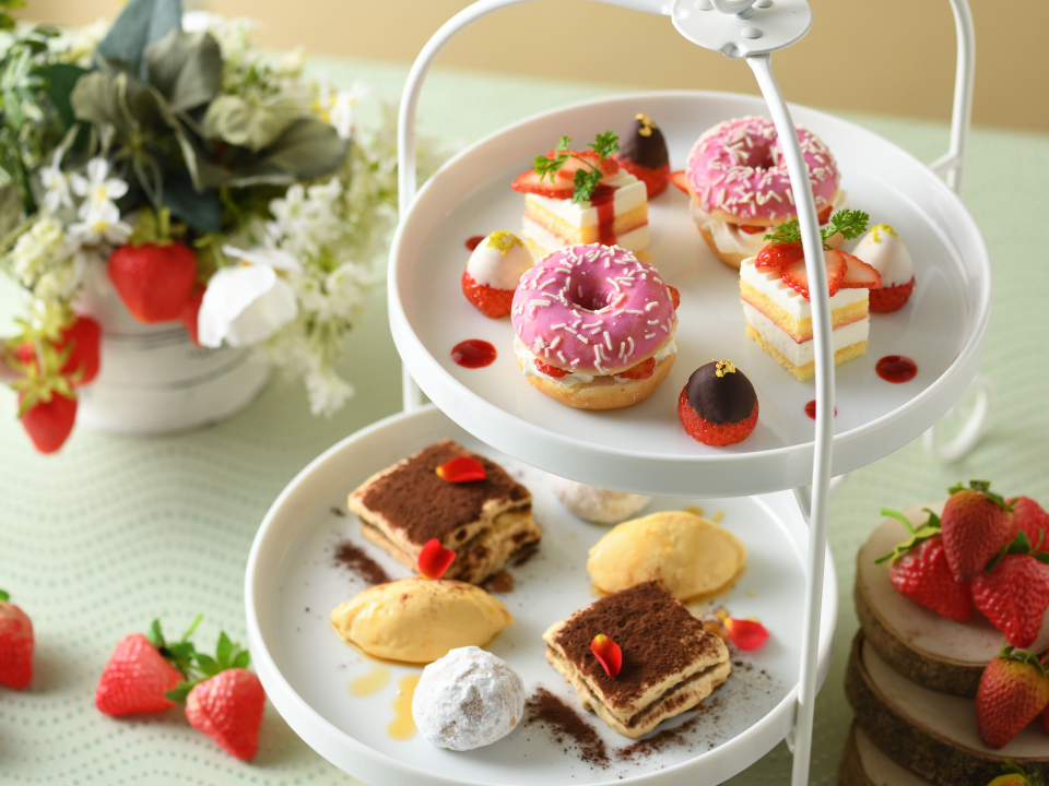 みずみずしい苺を贅沢に使用したスイーツと、シェフこだわりのセイボリーをバランス良く楽しめる「苺アフタヌーンティー」。サクッと香ばしい「苺のパリブレスト」をはじめ、苺のティラミスやタルト、ロールケーキがテーブルを華やかに彩ります。 苺好きにはたまらなく幸せなひとときを、心ゆくまでお楽しみください。